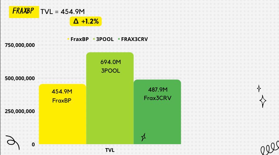 Here's my favorite section of the Frax Check.  The Liquidity Check.  Do you guys remember the theme of this week, it was “It’s beginning to look a lot like Fraxmas”.  We’re at 66% of the 3POOL.  Insert meme “+1%”.  The FraxBasedPool is $454.9M versus 3pool's $694M.  The basedpool saw an increase of 1.2% in TVL.  But what’s more troubling is that there’s an imbalance in the FraxBP pool right now of nearly a 25/75 split between USDC/FRAX that needs to be rectified.  So expect the FraxBP to decrease even more but note here that the Frax3CRV pool is ABOVE the FraxBP.  This is the first time it’s flipped since it passed the Frax3CRV.  We need to monitor the situation.  Moving on, let’s chat about our metapools.