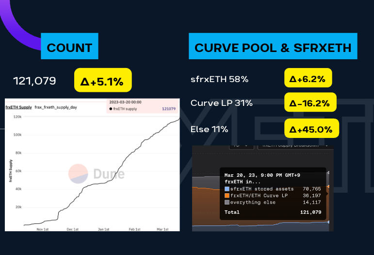 The frxETH supply is 121,079, an increase of +5.1%; not too shabby.  As frxETH supply matures, growth may slow down, but for now its still amazing.
