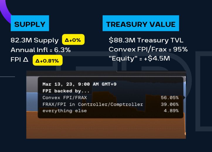 The Frax Price Index (FPI) supply is 82.3m and is above the peg by 0.81%. FPI’s treasury is at $88.3M.