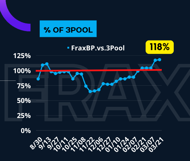 This week the FraxBP increased its TVL to 118% of 3pool, a 1% increase from last week.  It looks like we’re sustaining this ratio!