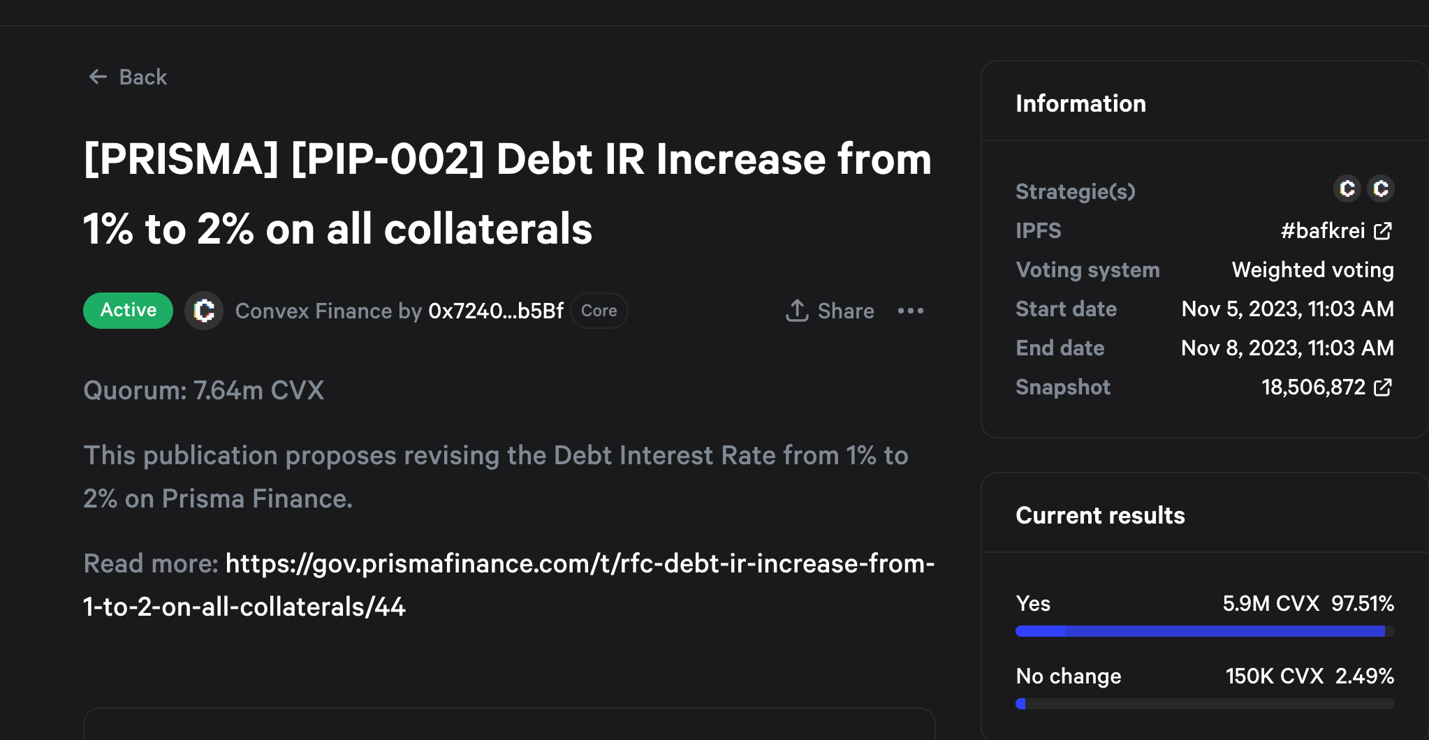 Here is tweet from @Tetranode showing what will be voted on for Prisma very soon. FEE SWITCH. Did I mention Prisma base fees were already voted on to be raised from 1% to 2%? Click here to view the post.