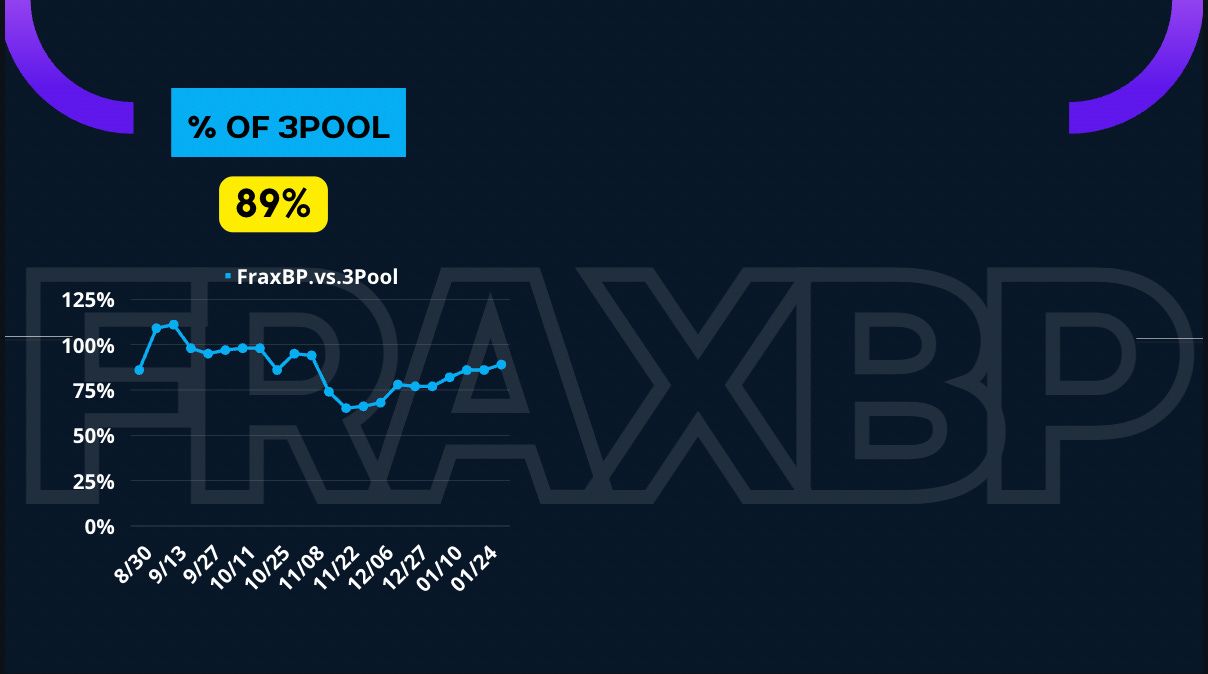 Okay.  Quick summary Health Check.  Peg Good.  Curve Swap unchanged  Collat % could be better been stagnant.  Decent % may be in a reversal to the upside but we’re stalling a bit.  Next, we have the FraxBP product, which imo is sort of like liquidity as a service.