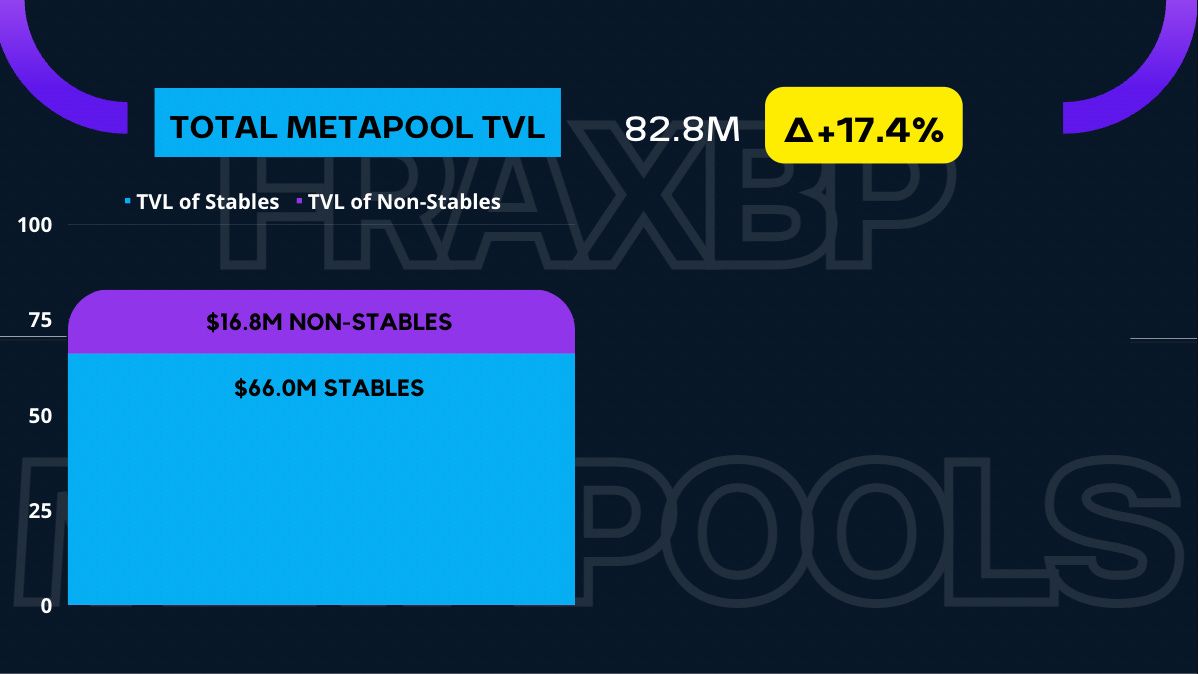 So, adding all of the stables and non-stables TVL, we have a total of $82.8M of liquidity paired against FraxBP – up 17.4% this week.