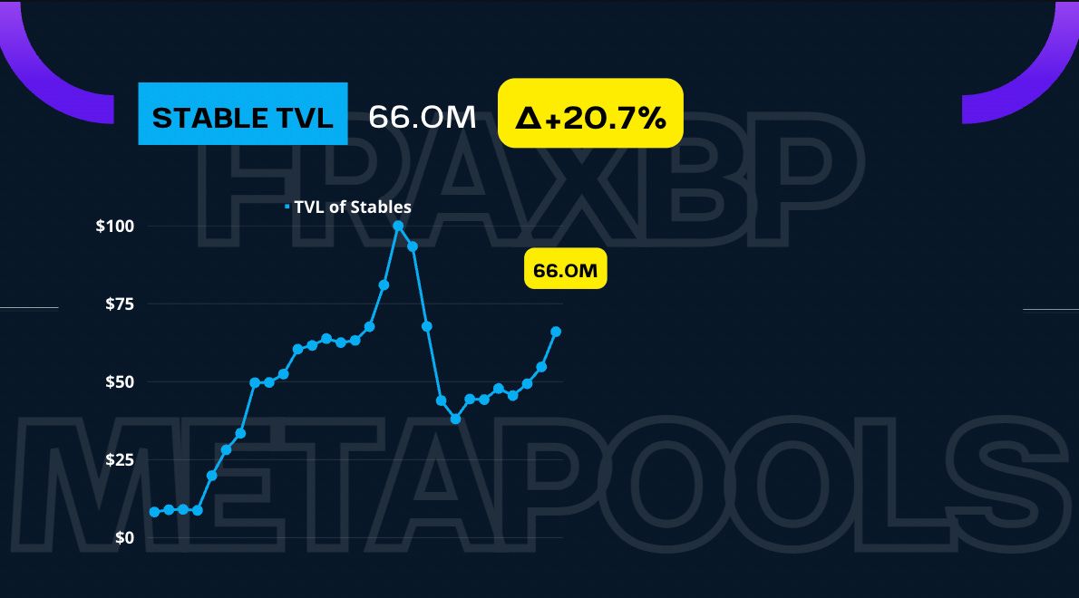 Summary time.  Liquidity Check.  FraxBP is 495.2M which is 89% of 3Pool.  The MetaPool is at $66M for stable pairs and $16.8M for non-stable pairs.  And TVL of All pairs (stables + non-stables) are at $82.8M.