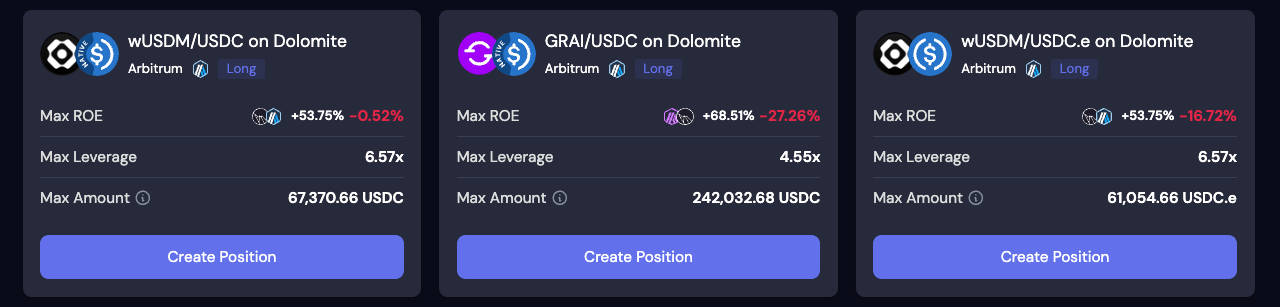 You must check out Contango. Dolomite is currently receiving ARB incentives for its borrowing markets, and three pools are offering over 50% on yield right now for USDM/USDC, USDM/USDC.e, and GRAI/USDC. These are all great, stable yields that you can farm.