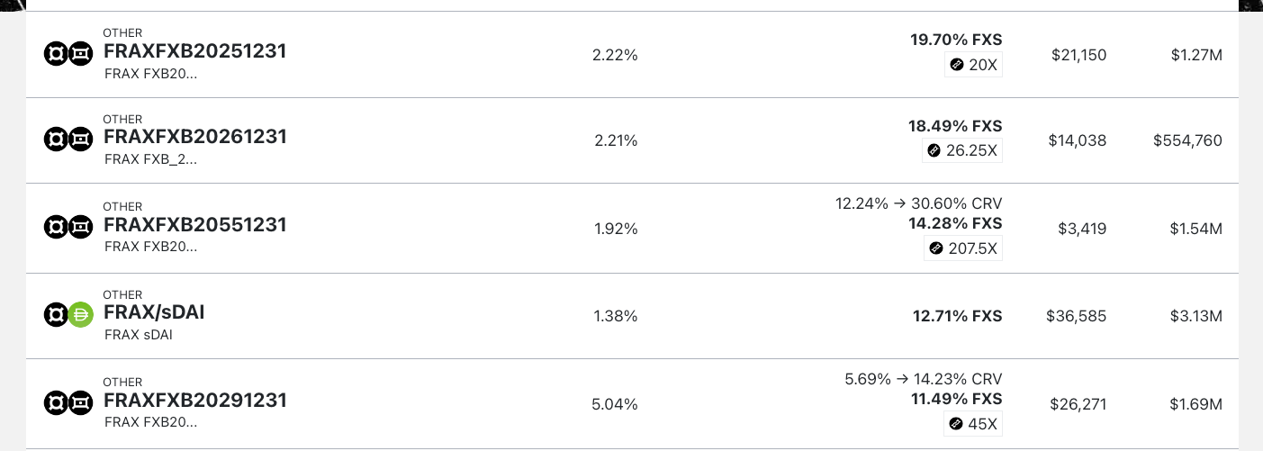 By adding LP to Curve for the December 2025 expiration, you can earn 44% APR plus 207x Fraxtal points, which is absolutely bonkers. The pool has no lockups, and you earn yield from both the FXBs and the reward incentives.