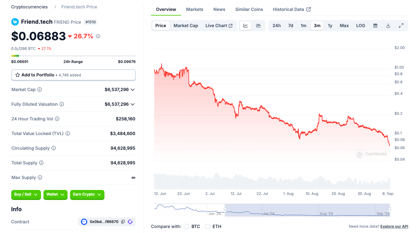 FRIEND is down 30% today on the news... gg everyone who farmed this religiously for months, only to see it sputter and die.