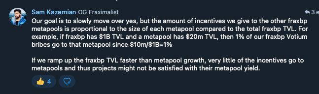 The CRV and CVX pools are proposed to receive a maximum allocation of 5mil FRAX each and the FXS pool 1m FRAX.