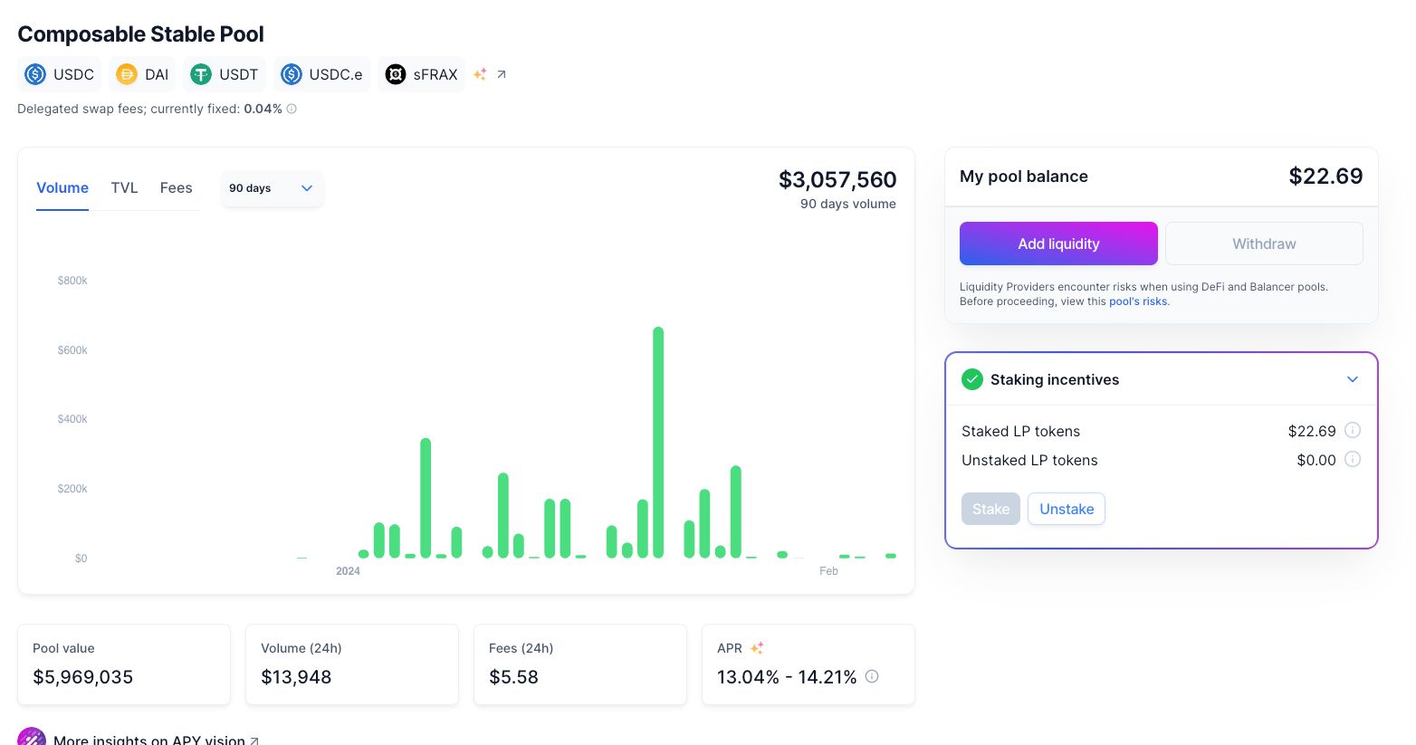 Coming in 2nd for TVL growth, the Balancer sFRAX pool increased by 43% from the previous week to $5.6m.