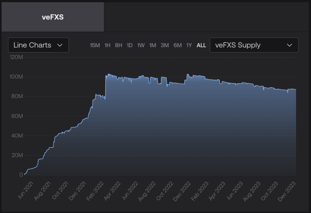 veFXS growth has be stagnate since Feb 2022 when yields dropped to the low single digits. Since then, no major catalysts have driven investors to lock up their FXS for long periods of time. CR to 100 will hopefully change this dynamic and spur new locking of FXS for yield. We are ready.