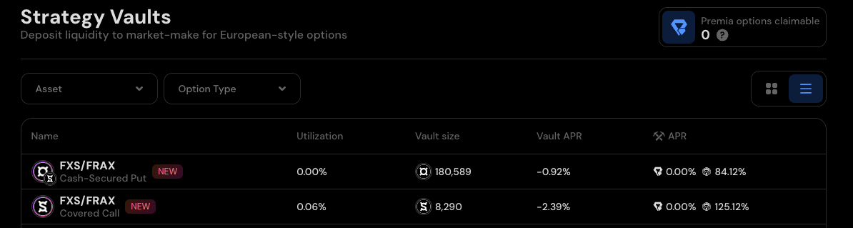 Premia has some great high APR STIP incentivized vaults open for FXS and FRAX deposits. By depositing FXS or FRAX, you can earn 125% or 84% respectively. To learn how to get access to the yields, read our guide we wrote this week to accompany our Premia interview.