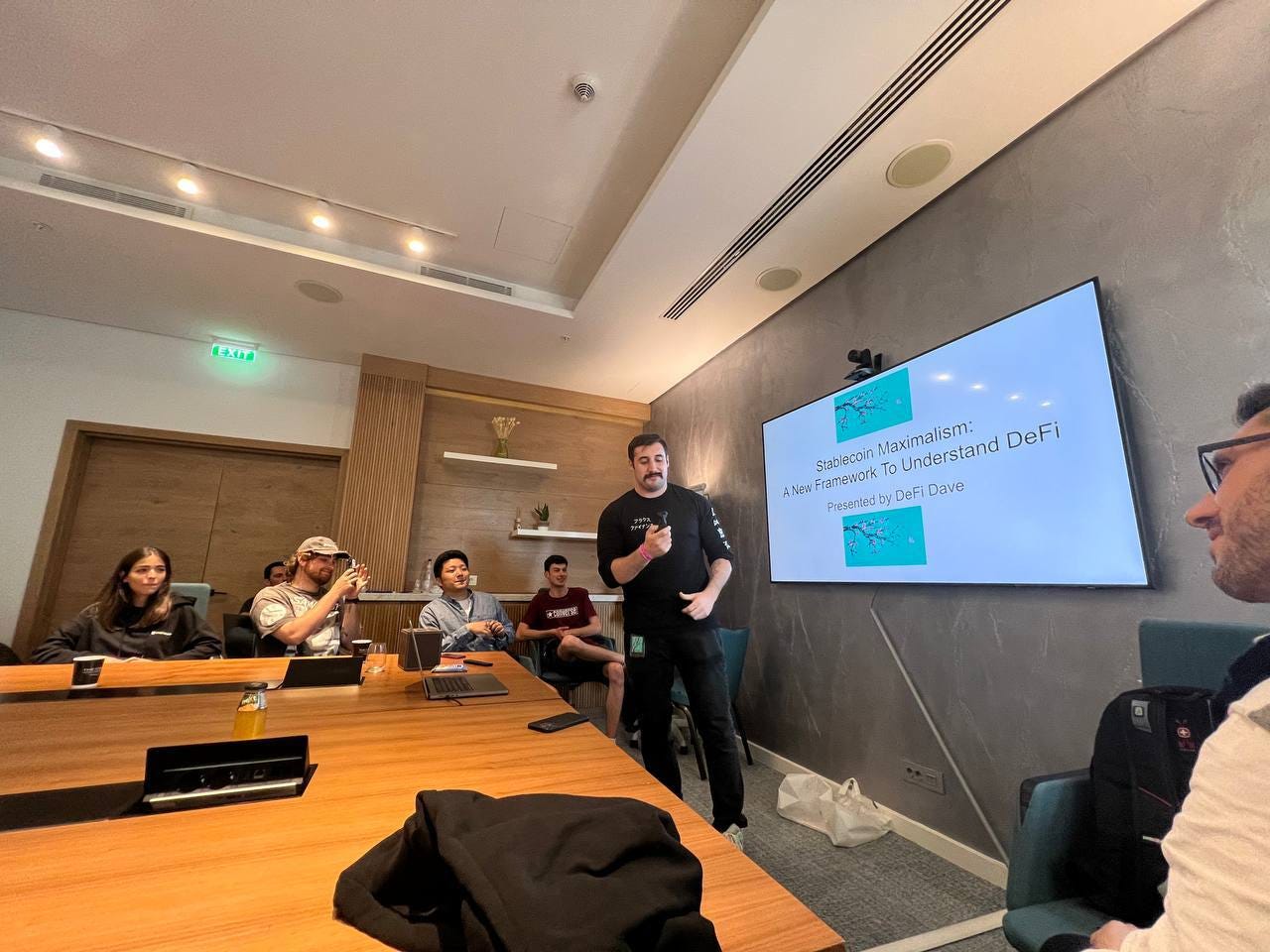 In between cold plunges, AI alignment debates, and general nerd sniping, Dave led a well-regarded talk on stablecoin maximalism.
