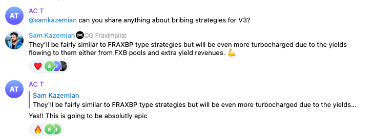 Also, Sam K said that the new FXB pools would enjoy a similar bribing system as to what FRAXBP has now.