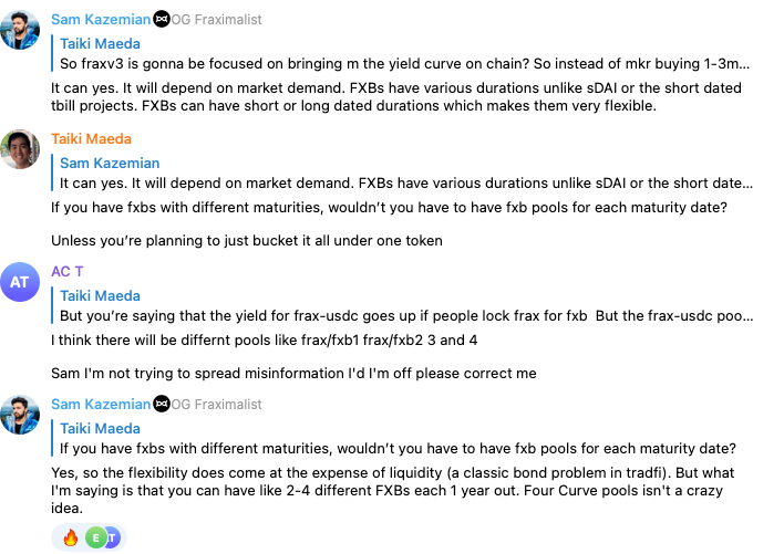 Sam K posted a ton of details in the Telegram chat and leaking more info about Frax V3, Fraxbonds and more.