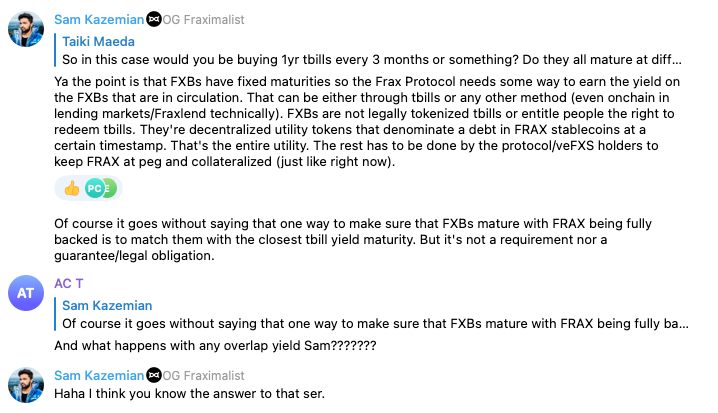 Sam K gave some interesting Alpha on how Frax DAO + Finres could profit from positive duration matching with FXB.