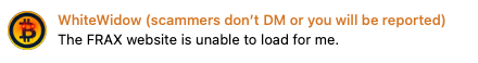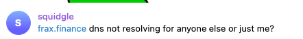 The last thing you want to see in chat is Fraxi's wondering what's up with the website. On Tuesday evening several people reported that the Frax.Finance website was down or pointing to the wrong DNS.