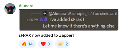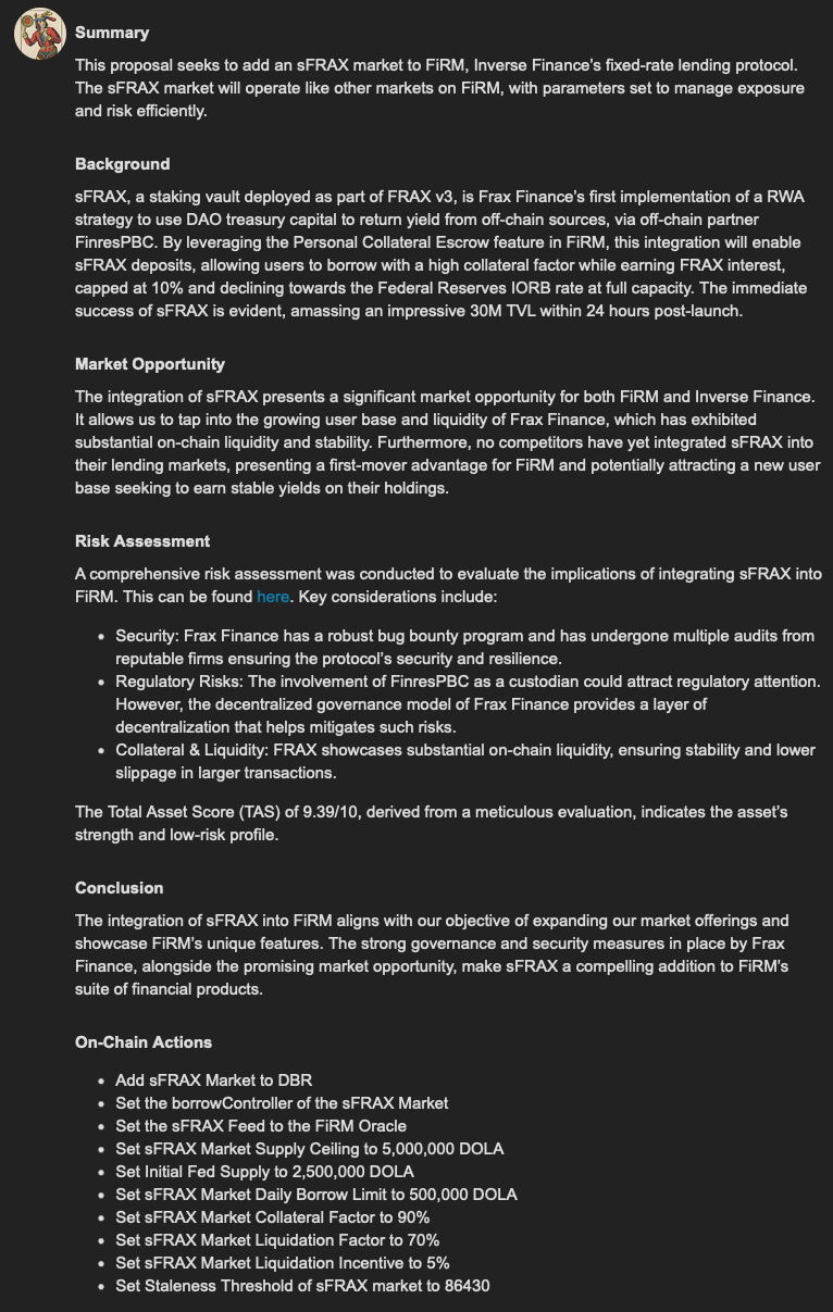 A proposal was created this week on Inverse's forum to add sFRAX to Inverse's debt market as a collateral asset. Up to 5m DOLA would be available for borrowing against sFRAX. cryptoharry from the Inverse team said that the "Leverage button" would also go live soon.