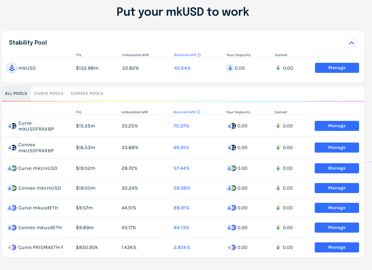 As PRISMA is now apart of the Convex ecosystem, this means FRAX has a piece of the voting share to determine liquidity incentives for mkUSD. The above mentioned pairing with the FRAXBP should draw in new capital as liquidity yields are high for the pair for the next few weeks.