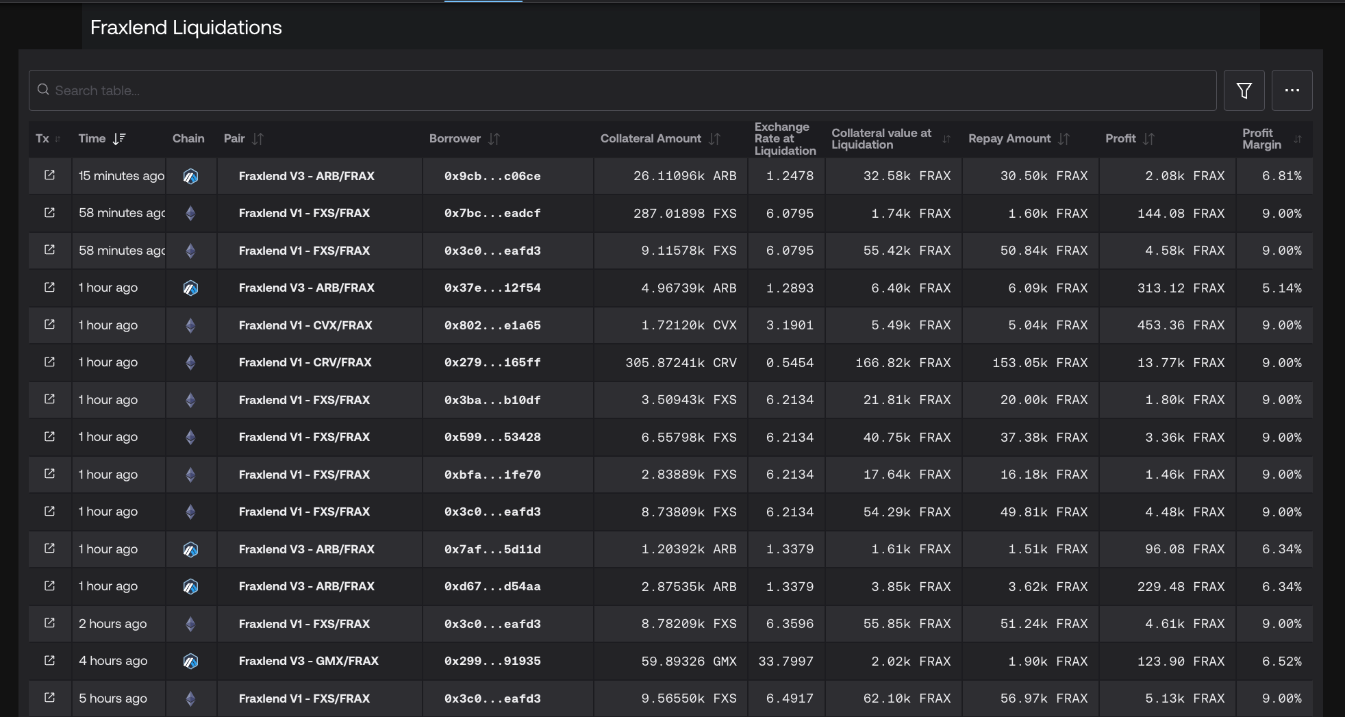 Today the price of FXS fell 25% as of writing. This rapid decline in price led to a large round of liquidations on Fraxlend.