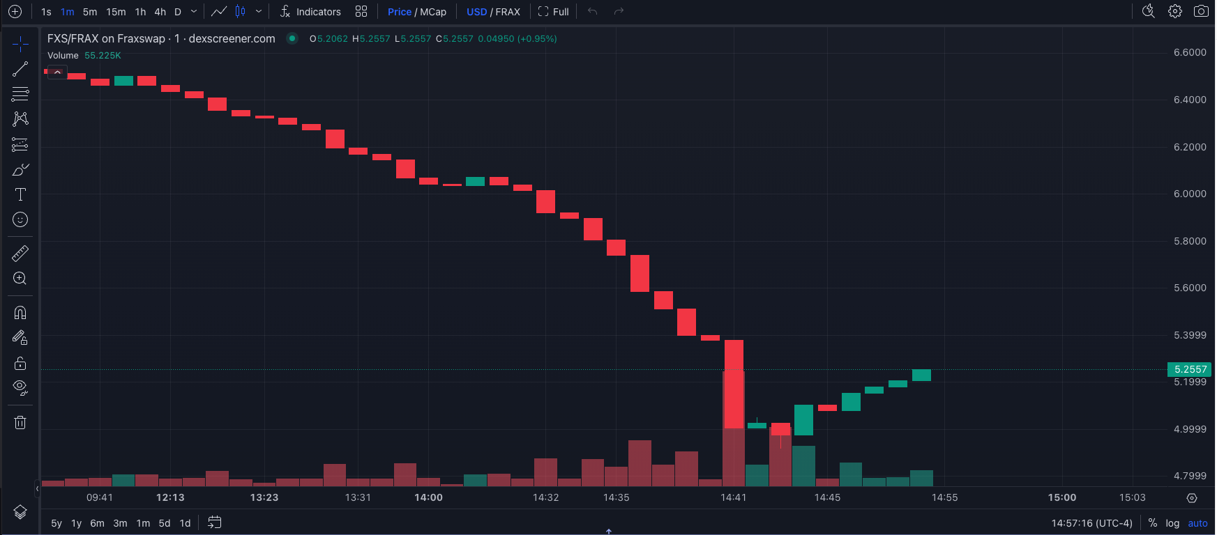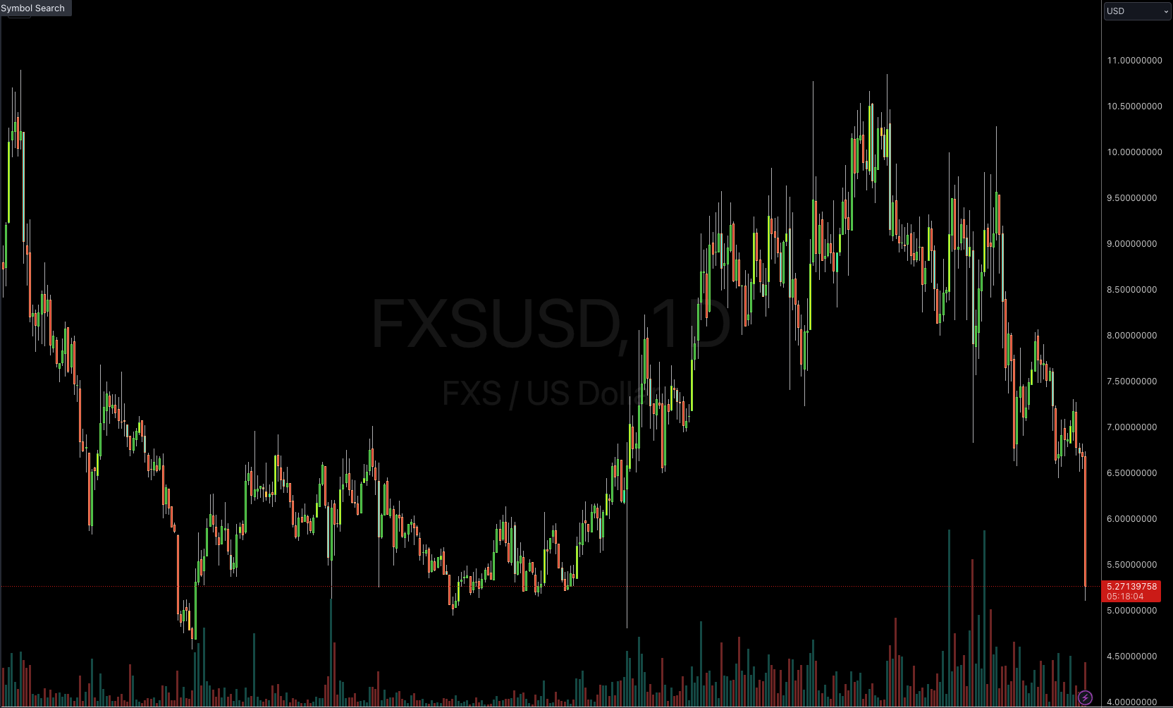 More than $2m worth of FXS was liquidated as the price fell rapidly below 6.