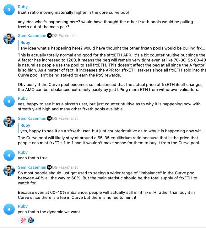 Ruby asked a question on the FrxETH/ETH Curve LP composition