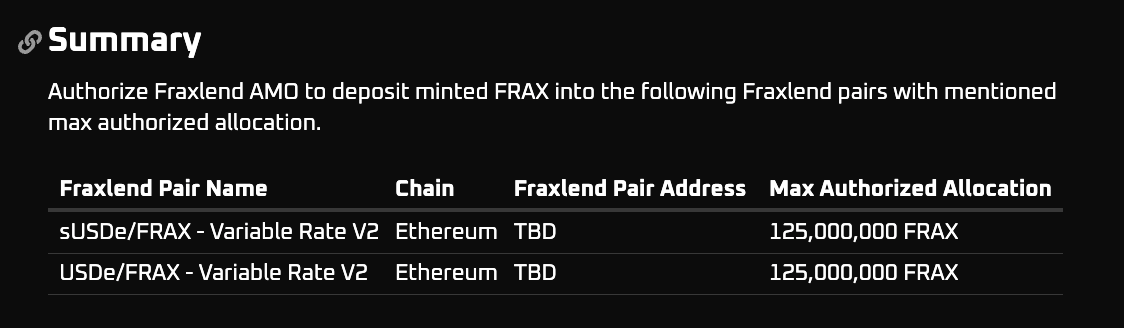 A massive new AMO proposal from the Core Team dropped this week, as they have recommended a $250m cap for sUSDe and USDe LPs on Curve. This would be the two largest AMO's ever voted on in Frax's history and would potentially bring significant revenues to the protocol.