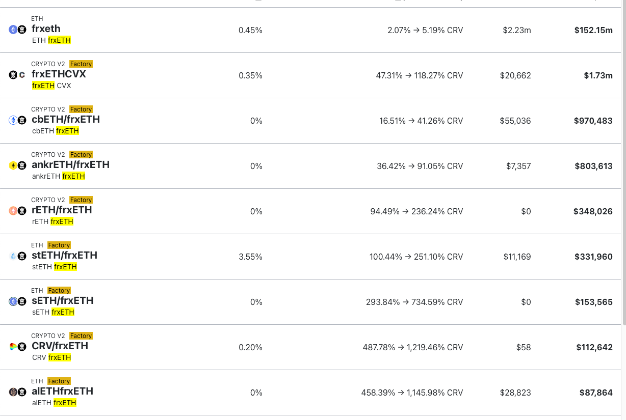 A new yield incentive program is going live for all frxETH pairs today. This is part of the WETHR program. The goal is to pair as much LSD liquidity as possible against frxETH in Curve. Already the program has attracted a few million dollars in liquidity, and it is expected to grow.