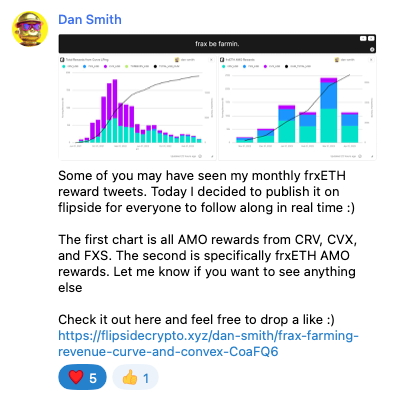 Benjamin from Qi DAO dropped in the chat this week to ask if they should add frxETH and sfrxETH to their protocol. Qi DAO is an interest free, multi-chain, borrowing protocol. Their stablecoin MAI can be issued against many different crypto assets. Currently they support only FXS.