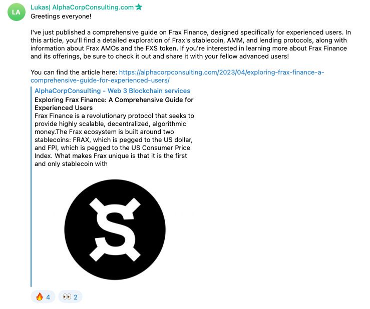 Link from the pic above - https://alphacorpconsulting.com/2023/04/exploring-frax-finance-a-comprehensive-guide-for-experienced-users/