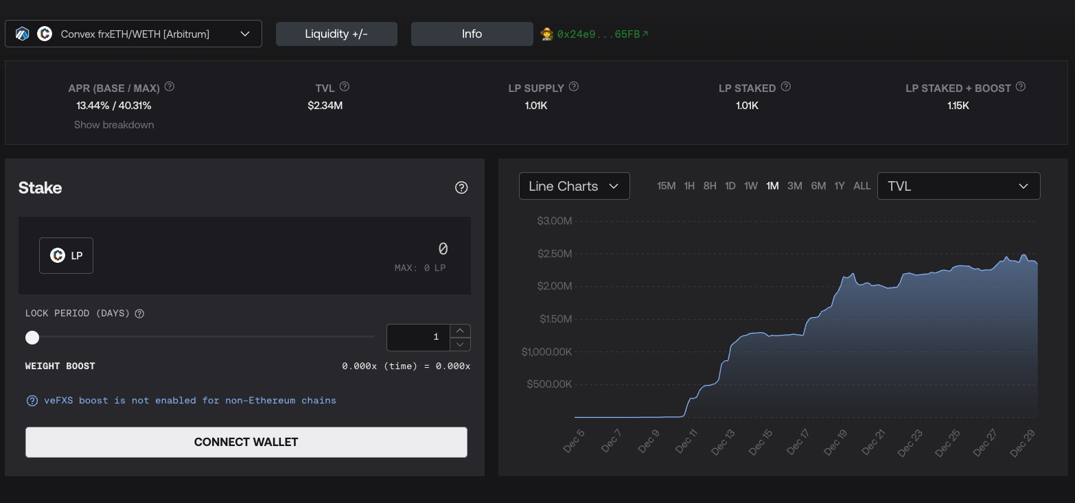Once more liquidity is added by market participants to this pool, it could support a lending pair. We're expecting that the Arbitrum STIP rewards should help grow this pool and eventually support a robust Fraxlend lending pair.