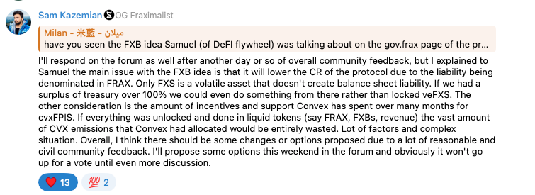 The proposal has been the main topic of discussion in the Frax community with people picking sides. As of publishing of the proposal, FPIS was trading at an average of $1.10 since last October, with a circulating market cap of approximately $30m. The initial proposal values FPIS at a 1:1 ratio with FXS, currently trading at $8.