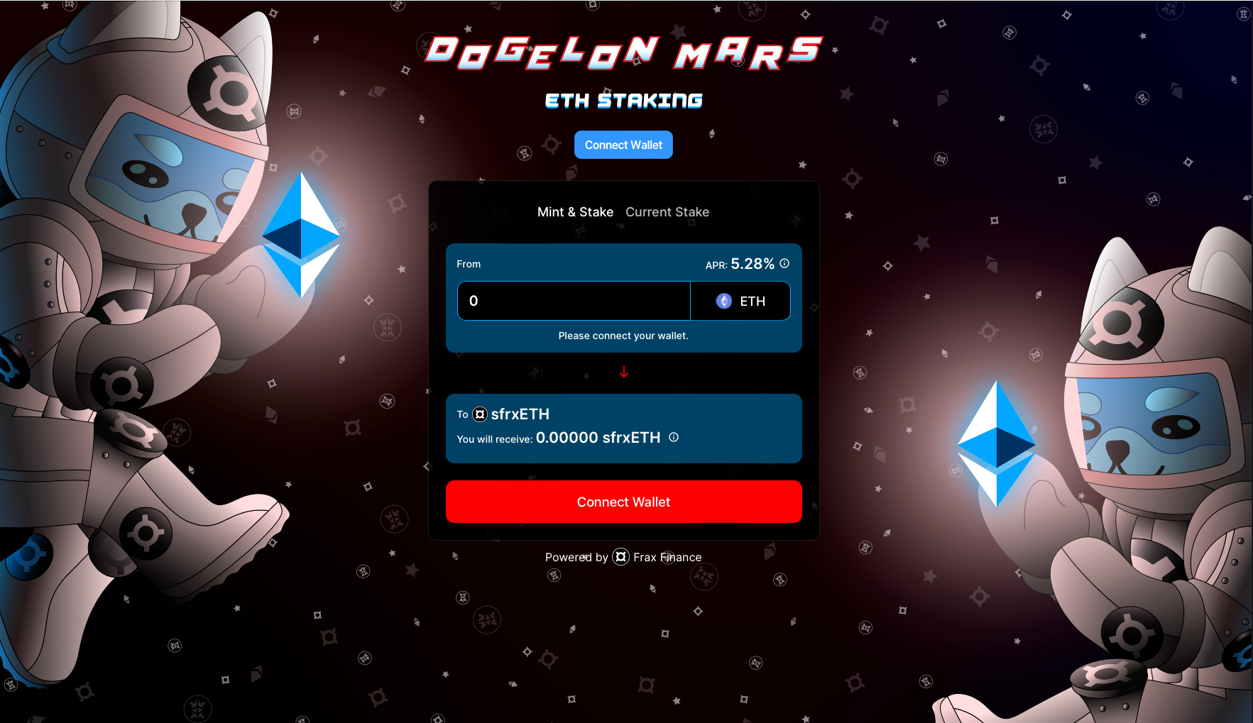The Dogelon team added a page to easily stake ETH for sfrxETH. Their interface is very on point and has great visuals :)