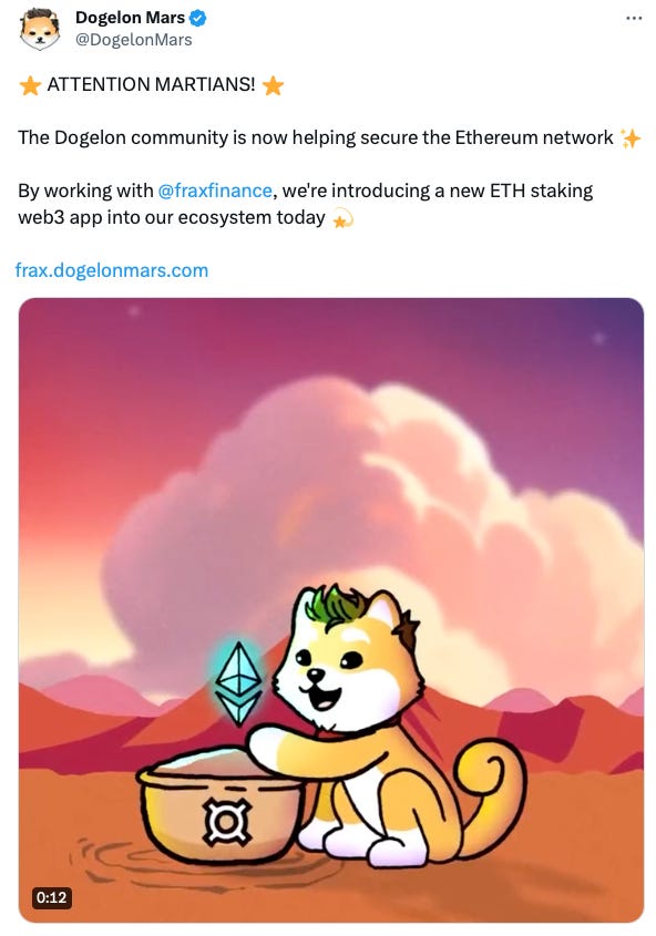 Dogelon Mars Adds sfrxETH as a Liquid Staking Option
