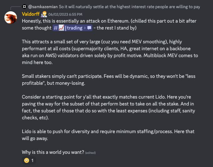Sam K went into the “Lion’s Den” aka the RocketPool Discord channel immediately after the Dorahacks stream. Suffice to say… it was not initially a warm reception.