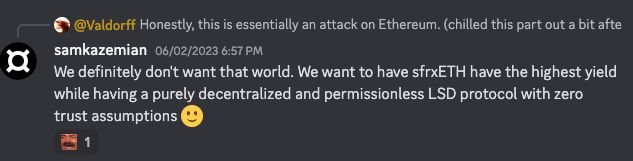 In what turned out to be a huge week, Sam Kazemian gave a presentation to kick off the Dorahacks-Flywheel-Frax Online Hackathon. With the slightly innocuous title of “Frax Build LSDFi Technical Worskshop.” Over 30 minutes he laid out a high level overview of the upcoming frxETH v2 system.