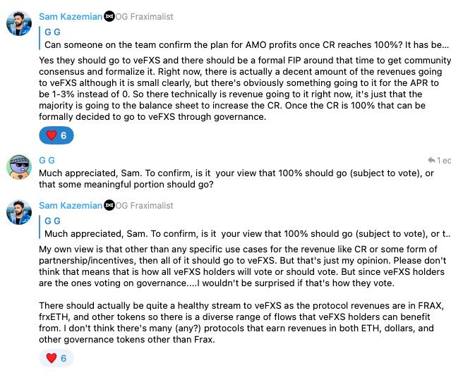 Once the CR hits 100%, though, we are going to have to have a discussion in the DAO about what to do with the revenues.