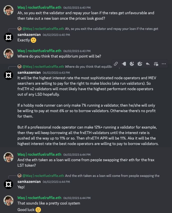 We’re really excited to share more info about the upcoming launch of Frax ETH v2 with you next week. We’re going to have an exclusive interview with Sam Kazemian next on the main pod where we will go super in depth about the new product.