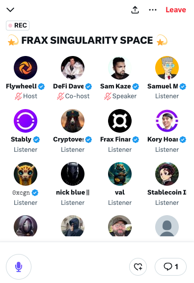 DeFi Dave and Sam Kazemian joined for a Spaces to discuss the Singularity today. They discussed the upcoming buybacks after the fee switch is activated, and the new Frax Liquidity Engine and more.