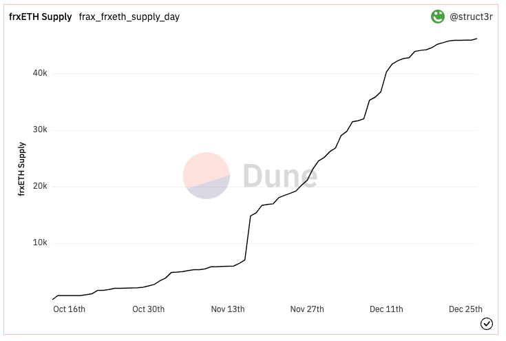 In the past 2 months more than 50,000 ETH has been staked as FrxETH. That’s 60 million dollars of capital flowing into this brand new LSD.