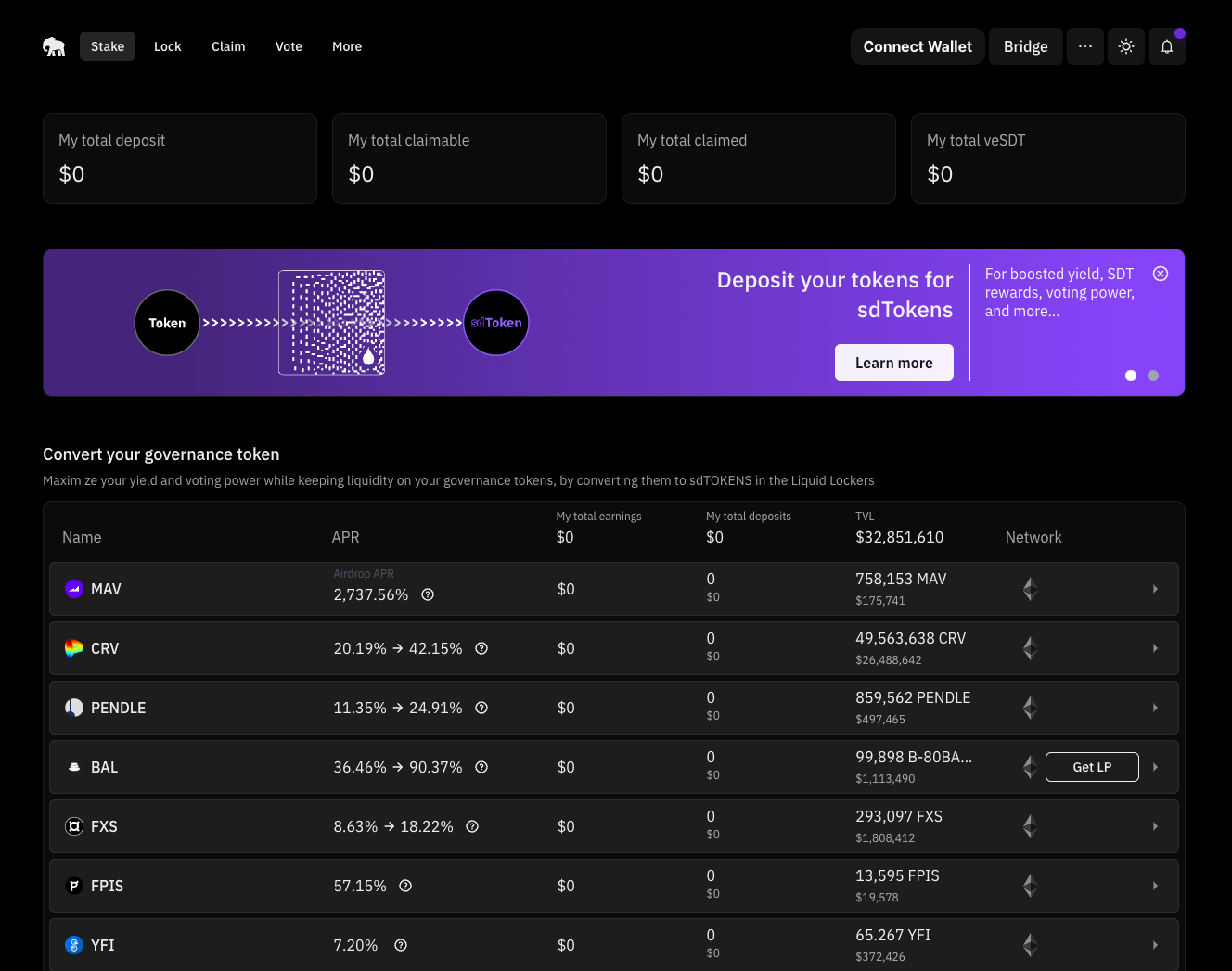 Stake DAO is a decentralized platform helping users amplify their crypto assets. The platform offers varied strategies, each with a risk score for informed decision-making. They charge a 15% performance fee, compound 85% of profits, and levy a 0.5% withdrawal fee for veSDT holders. Their standout feature is the Liquid Locker, maximizing benefits from tokens like ANGLE, FXS, and CRV. Users enjoy higher yields, voting rights, and liquidity. For FXS, Stake DAO introduced sdFXS, offering more flexibility in utilizing and benefiting from the token.