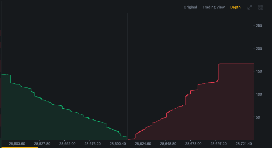 The problem with V2 contracts is that no professional market maker provides liquidity in a 50/50 fashion. Liquidity is never a constant function on centralized exchanges. Depending on market conditions, market makers will adjust their bids and offers to maximize their potential returns. Seen below, bid and asks add up in a natural way based on the market makers assumptions on risk and availability of liquidity to arbitrage against.
