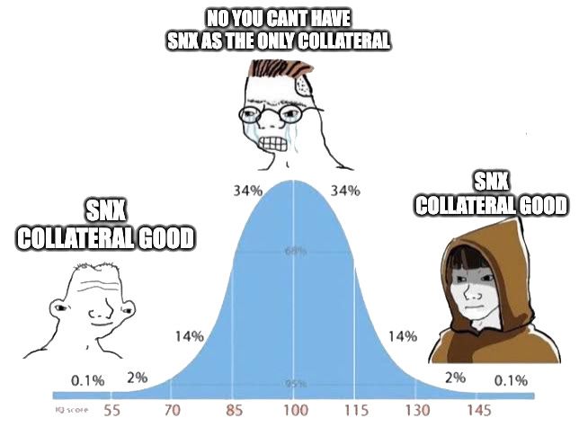 Kain recognizes the need for Synthetix to evolve and meet users "where they are." Early liquidity providers (LPs) in the Synthetix system took on considerable risk, likened by Kain to giving someone an AK-47 and instructing them to charge into the heap of battle. This approach made sense early in Synthetix's history since those in DeFi at the time were the type of individuals comfortable with such risks and had the fortitude to stand volatility. Today, however, Kain envisions a future with more passive LPs who wish to test the waters before committing further. Regarding LPs, Kain firmly believes that SNX is the only collateral needed for Synthetix's system. Although some may argue better collateral exists, Kain's reasoning for SNX exclusivity is its proven functionality and accrued lindy over time. He believes only when it's absolutely necessary should Synthetix become multi-collateral, and when that time comes, this capability could be activated in Synthetix v3.